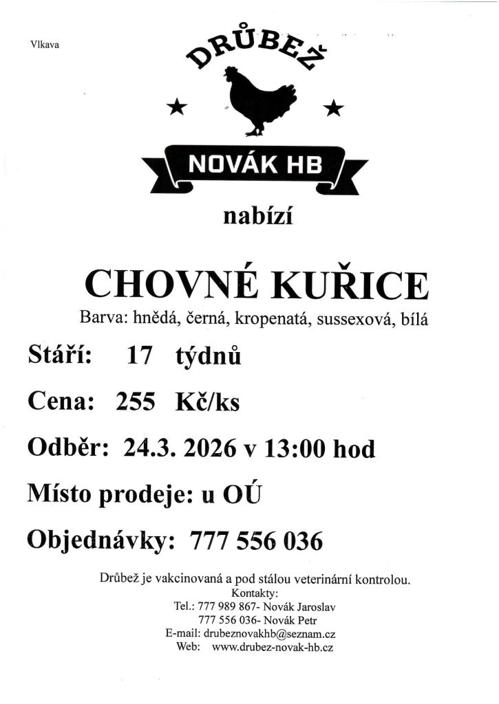 Dne 24.3.2026 v 13.00 hod u OÚ Vlkava.