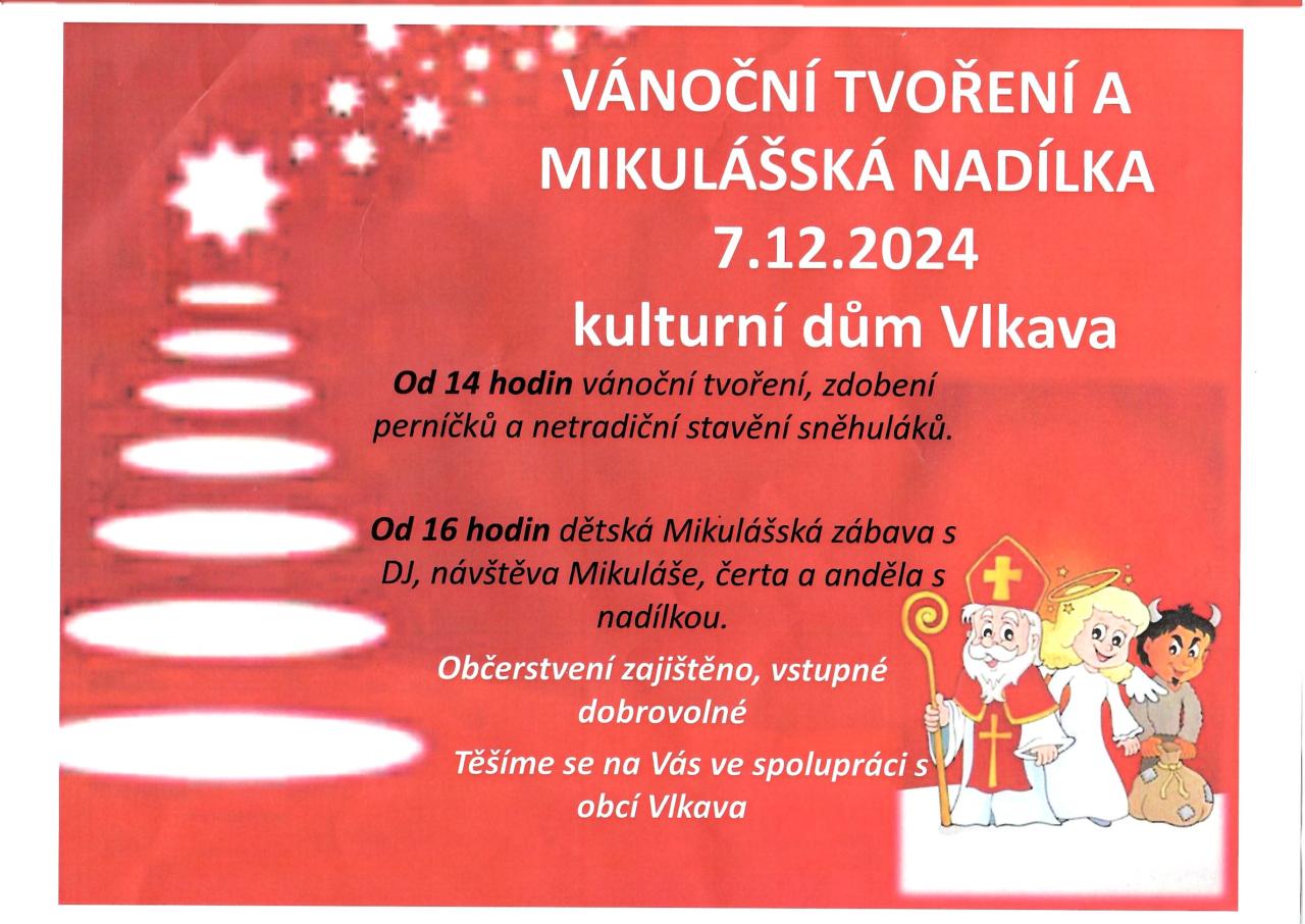 V sobotu 7. prosince 2024 se od 14 hodin koná vánoční tvoření se zdobením perníčků a stavěním sněhuláků. Od 16 hodin proběhne dětská Mikulášská zábava s DJ a návštěvou Mikuláše, čerta a anděla.